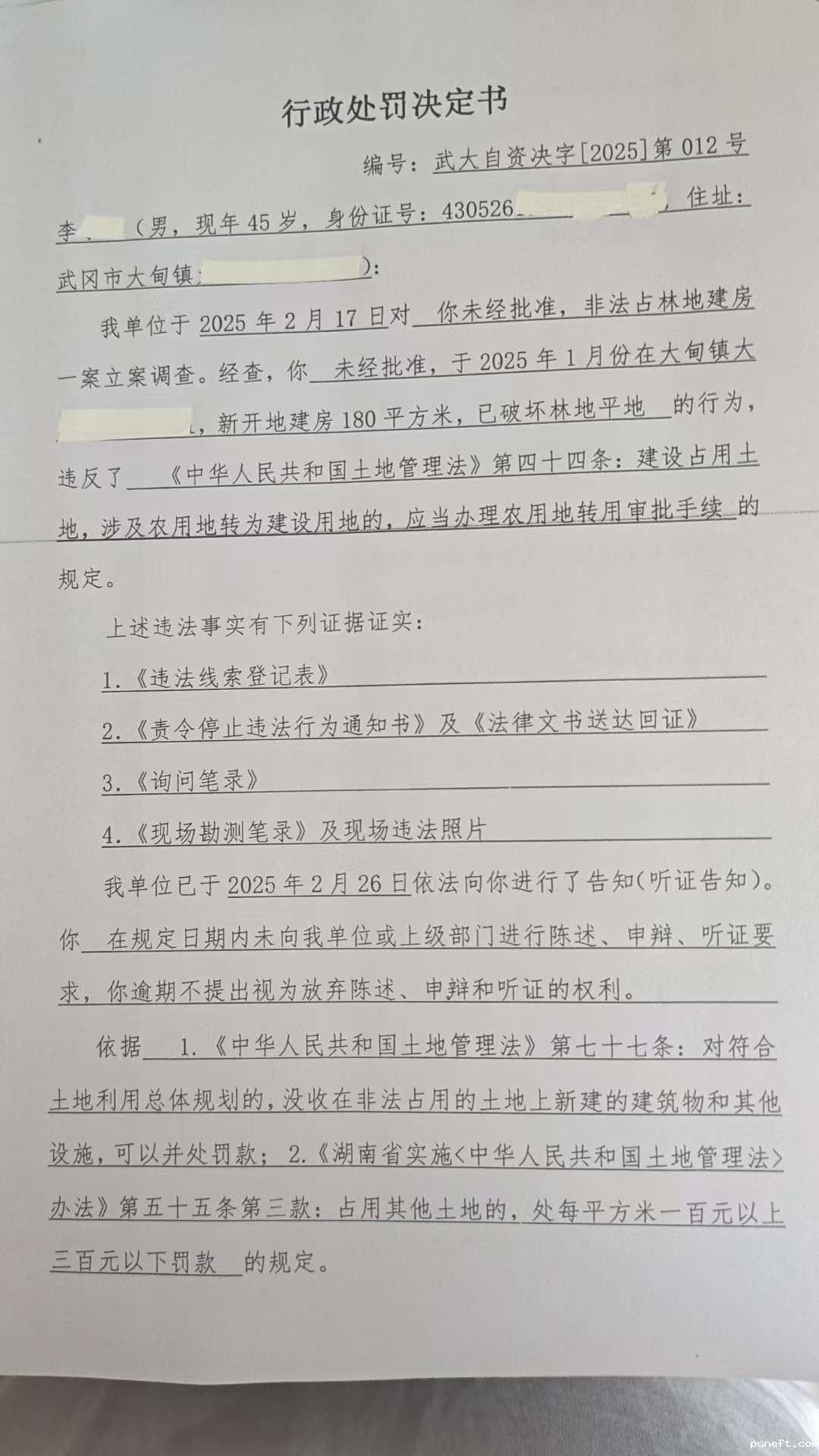 大甸行政处罚决定书 武大自资字【2025】第012号