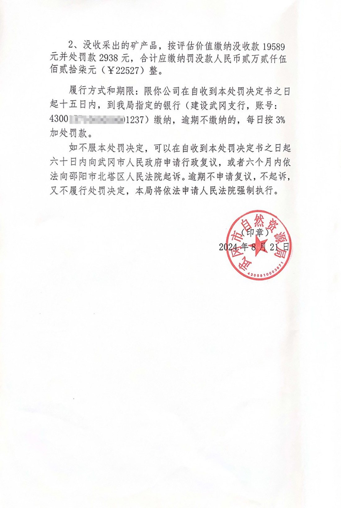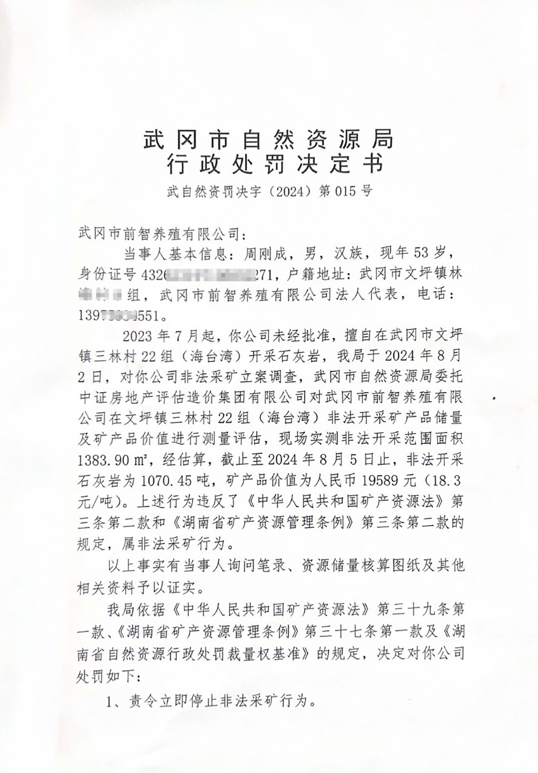 武自然资罚决字(2024)第015号