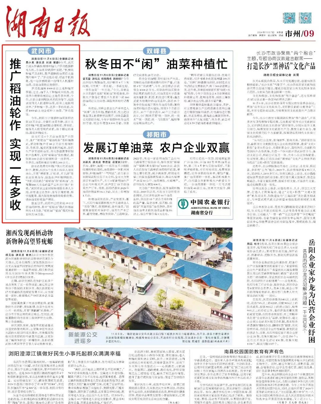 湖南日报丨点点体育app官网入口下载推广稻油轮作 实现一年多收