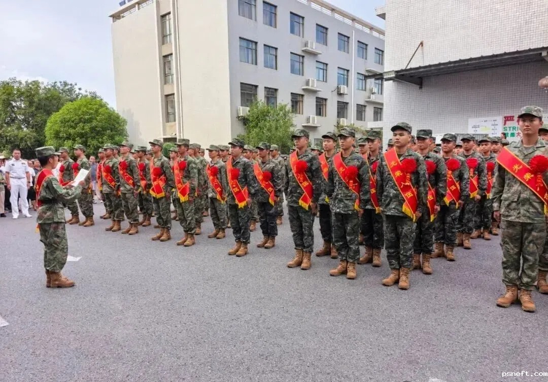 仪式上军歌嘹亮,新兵们身着崭新军装,肩披“光荣入伍”绶带,胸戴红花,精神抖擞、意气风发,展现出新时代青年从军报国的昂扬风貌。新兵代表毛城彬与家长代表肖滨分别发言,表达了献身国防的坚定决心和亲人的殷切嘱托。