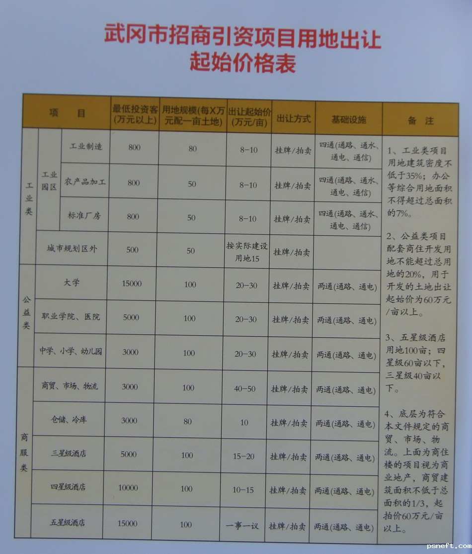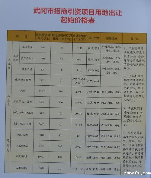 点点体育app官网入口下载招商引资项目用地出让起始价格表