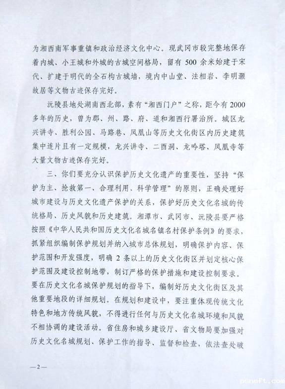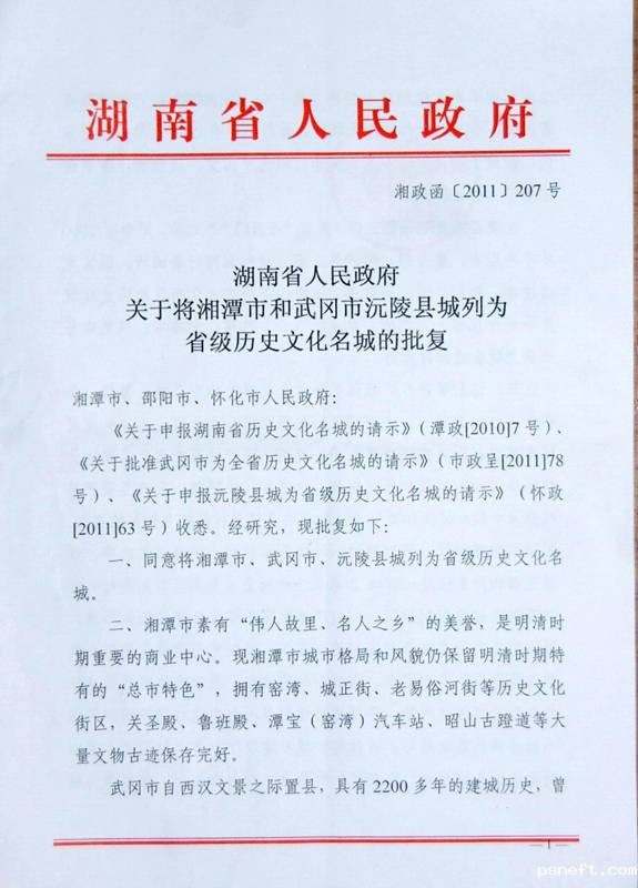 湖南省人民政府将武冈列为省级历史文化名城的批复(图)