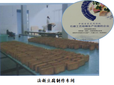 法新食品有限责任公司扛起振兴“土豆腐”大旗,一路高歌猛进。该公司是目前中国独家采用传统石磨工艺规模生产豆腐的企业。公司的“法新”牌石磨系列产品,在传承百年传统石磨原浆工艺基础上,经过多年的深入研究,科学地规整出一整套加工工艺的技术参数,并融入现代设备当中。该公司生产出来的产品细腻嫩滑、柔韧松软,相继获得中轻产品质量保证体系认证“质量信得过好产