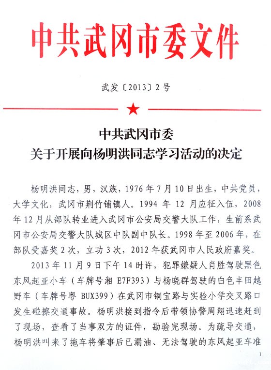 中共点点体育app官网入口下载委关于开展向杨明洪同志学习活动的决定