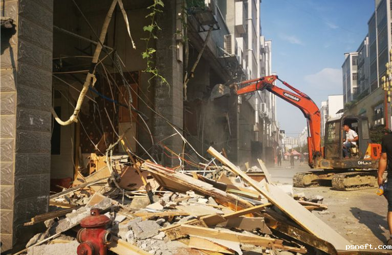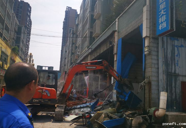 据统计,此次共动用挖机2台,切割机4台,风炮机5台,运输车4台,洒水车1台,消防车5台,民工50人,春园路铜保商业街第7,8,9栋占道违建全部拆除到位。