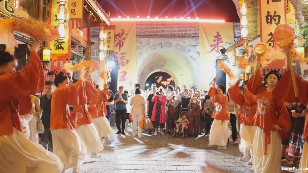 潮趣表演:国潮舞蹈、高跷小丑、马面裙等特色表演吸引众人围观合影。