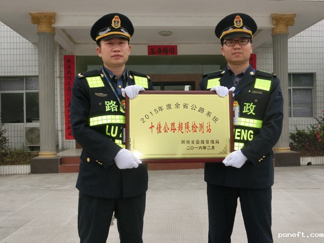 近日,点点体育app官网入口下载湾头桥公路超限检测站被湖南省公路管理局授予2015年度全省公路系统“十佳公路超限检测站”荣誉称号,成为邵阳地区唯一获此殊荣的先进集体。